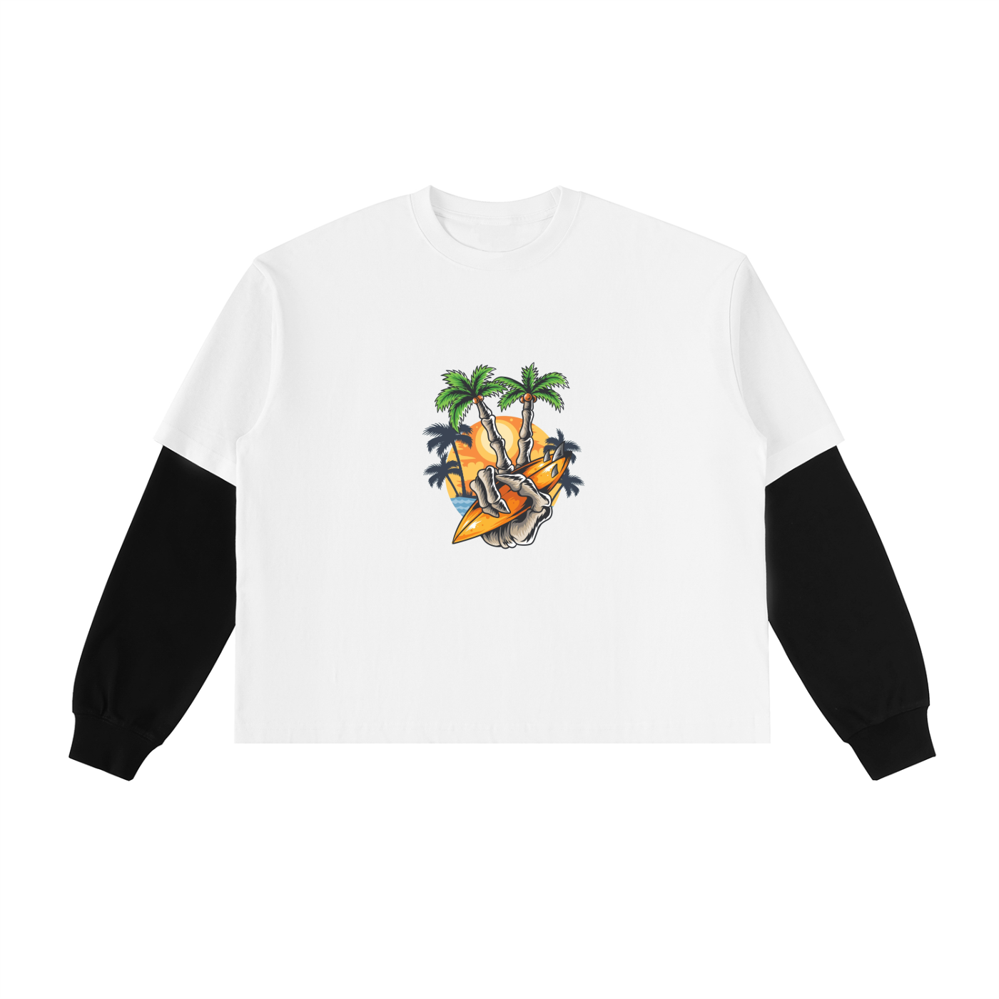 Layered Contrast Sleeve Cotton T-Shirt